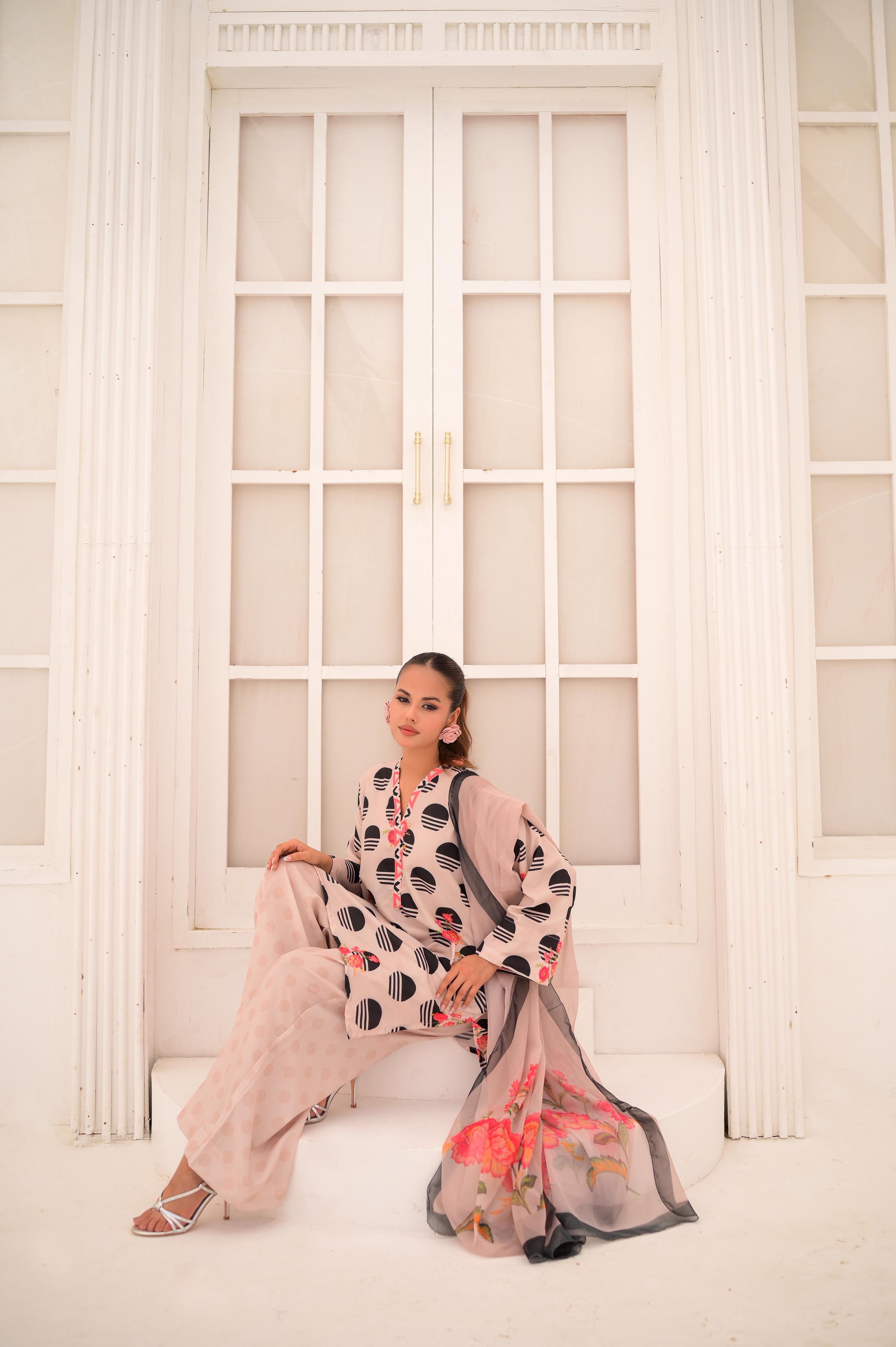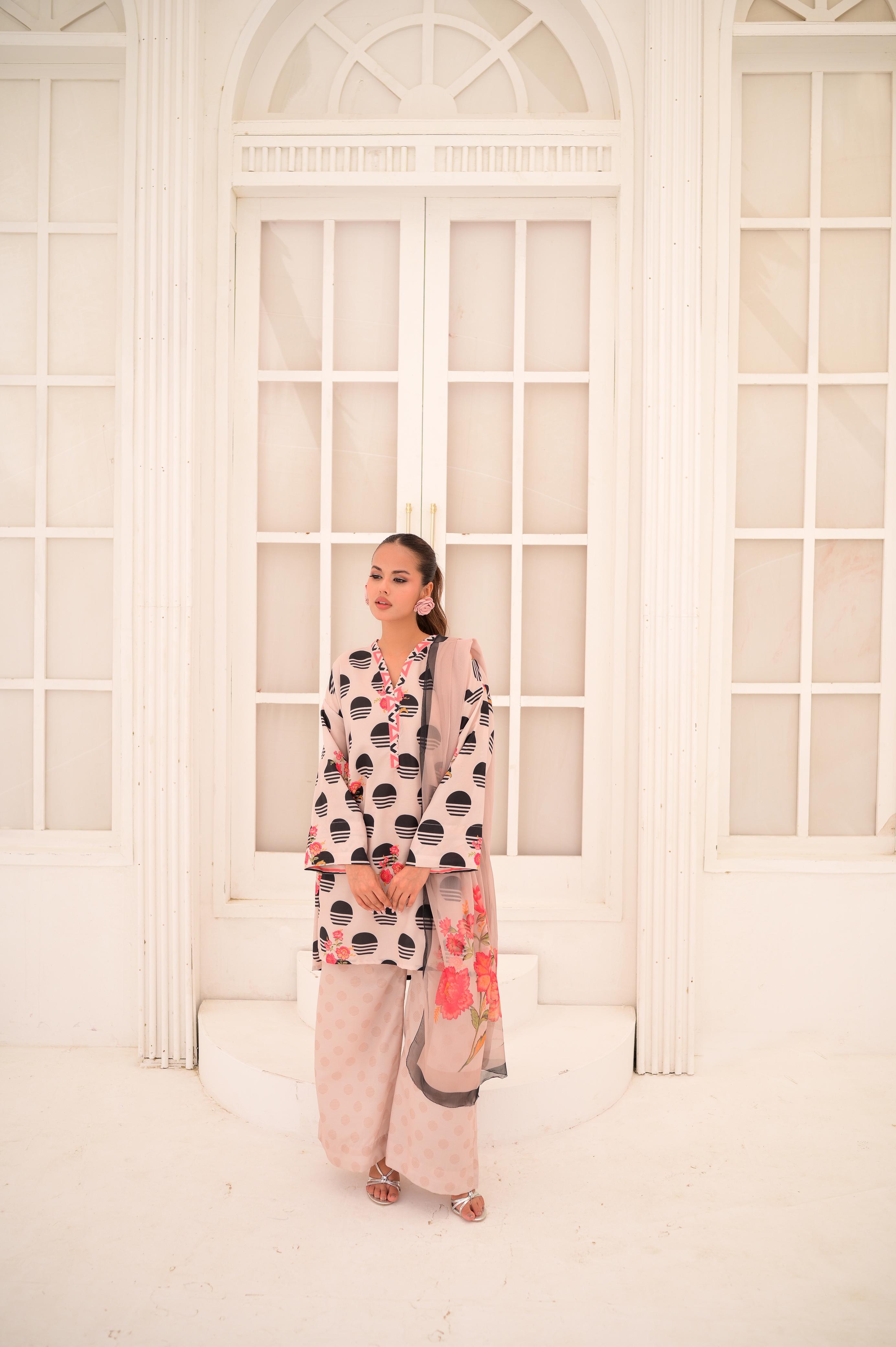 3 Piece stitched article. Fabric swiss lawn. dupatta chiffon.