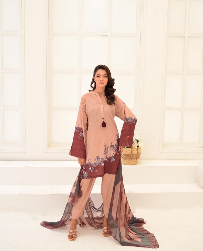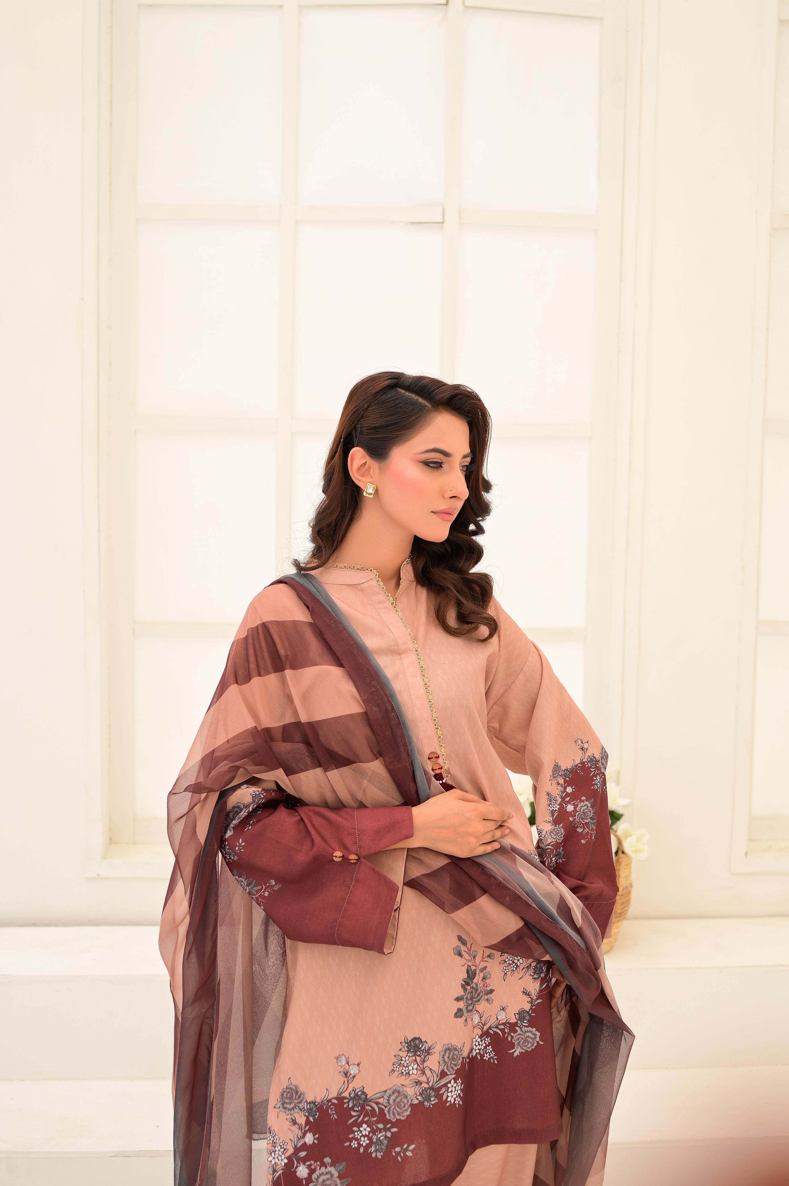 3 Piece stitched article Fabric swiss lawn wiyh chiffon dupatta.